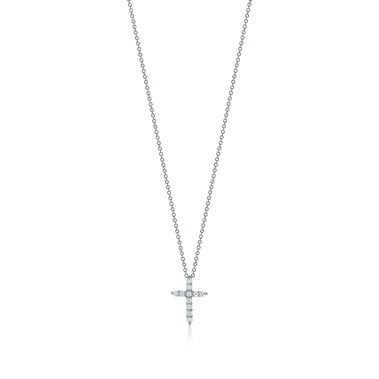 Cross pendant in platinum with diamonds, mini Cross pendant in platinum with diamonds, mini